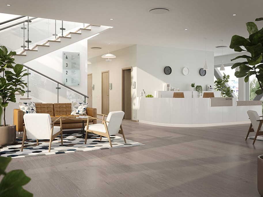 Gulvet er fremstillet i FSC-certificeret europæisk eg og opbygget med Woodura-teknologi, som gør overfladen op til tre gange så hård. Den robuste Pro matak giver en slidstærk overflade, som gør gulvet velegnet til både boliger og områder med høj trafik som kontorer, butikker, hoteller eller entréer.