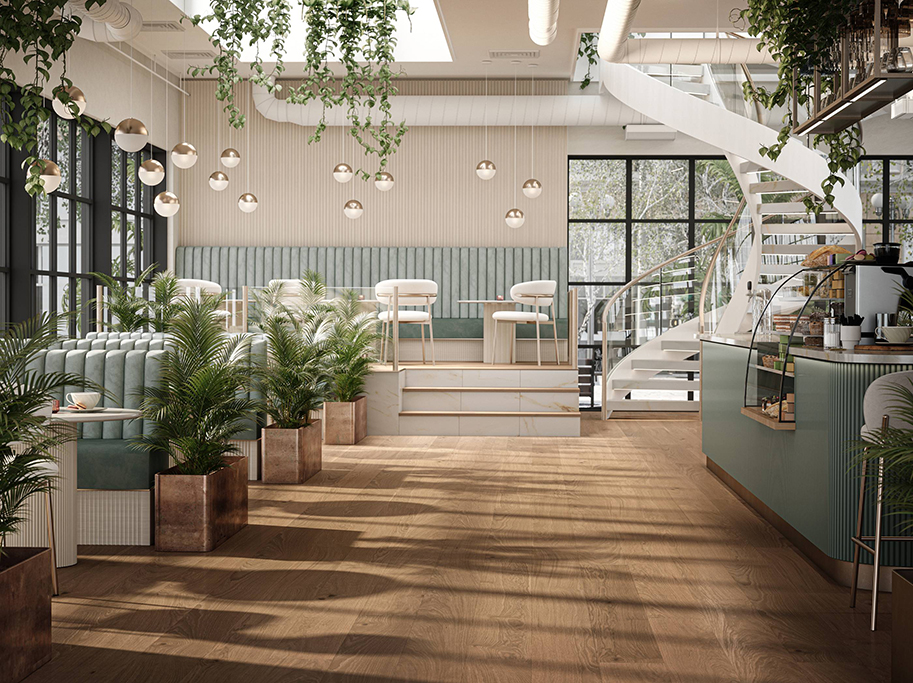Nature-sorteringen fremhæver træets naturlige variationer og giver overfladen et levende spil.
