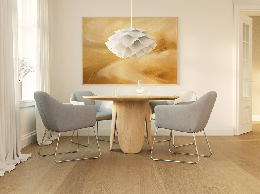 Bjelin Plankegulv Woodura Eg Norrlia 3.0 XL i Natural er et hærdet trægulv med rødder i klassisk svensk design. Den naturlige varme tone skaber en smuk harmonisk base i indretningen.
