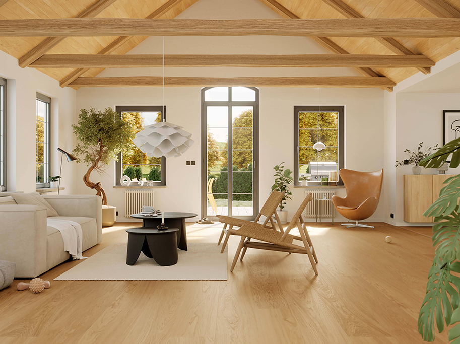 Bjelin Plankegulv Woodura Eg Norrlia 3.0 XXL i Natural kombinerer klassisk svensk design med ekstra brede planker. Gulvet har en lys og varm nuance, hvor de brede planker skaber lange, rolige linjer i rummet og bidrager til et sammenhængende og afbalanceret udtryk.