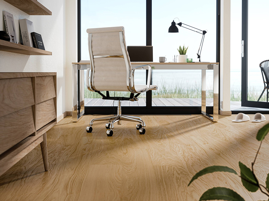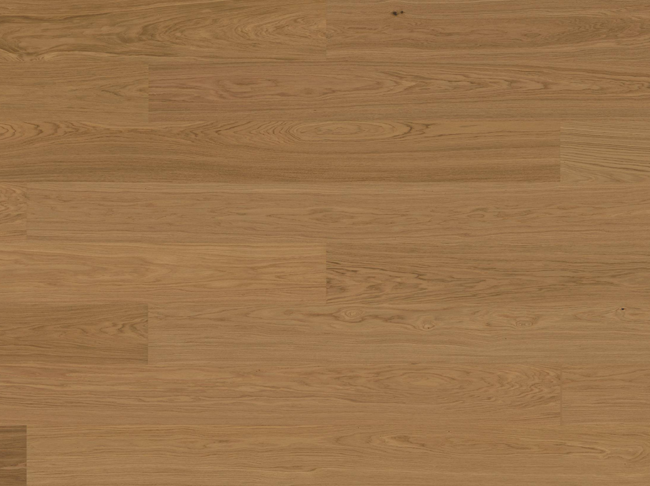 Select-sorteringen bidrager til en mere ensartet overflade, mens de 206 mm brede planker skaber et roligt og sammenhængende udtryk i rummet.