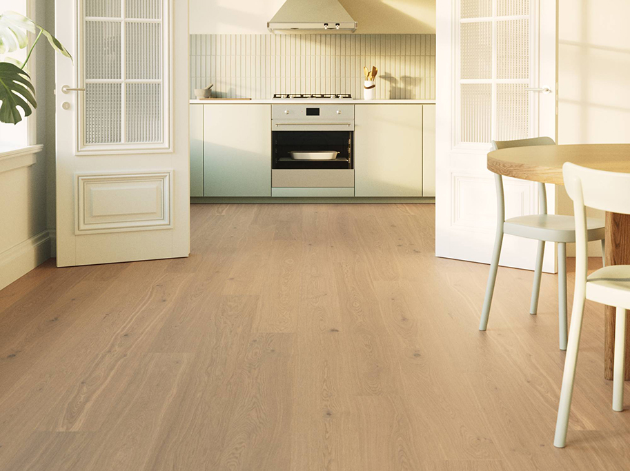 Gulvet er fremstillet i FSC-certificeret europæisk eg og opbygget med den patenterede Woodura-teknologi. Det giver gulvet en ekstra stærk overflade og gør det velegnet til både boliger og områder som hoteller, butikker og kontorer.