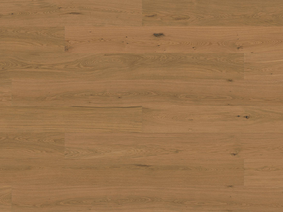 XL-formatet med 206 mm brede planker skaber en sammenhængende gulvflade med færre samlinger og et roligt udtryk. Nature-sorteringen og den gyldne tone fremhæver træets variationer og giver rummet en varm base.