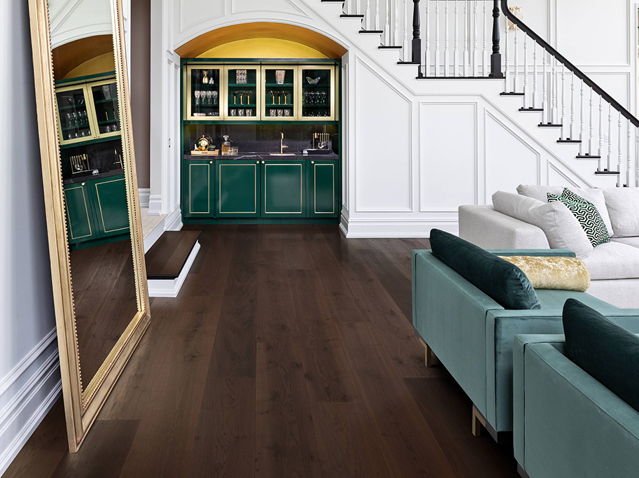 Bjelin Plankegulv Woodura Eg Lugnet 3.0 XXL i Heavy Smoked er et mørkt plankegulv med ekstra brede planker og en dyb, røget nuance. Den intense farve giver rummet tyngde og skaber et karakterfuldt udtryk.
