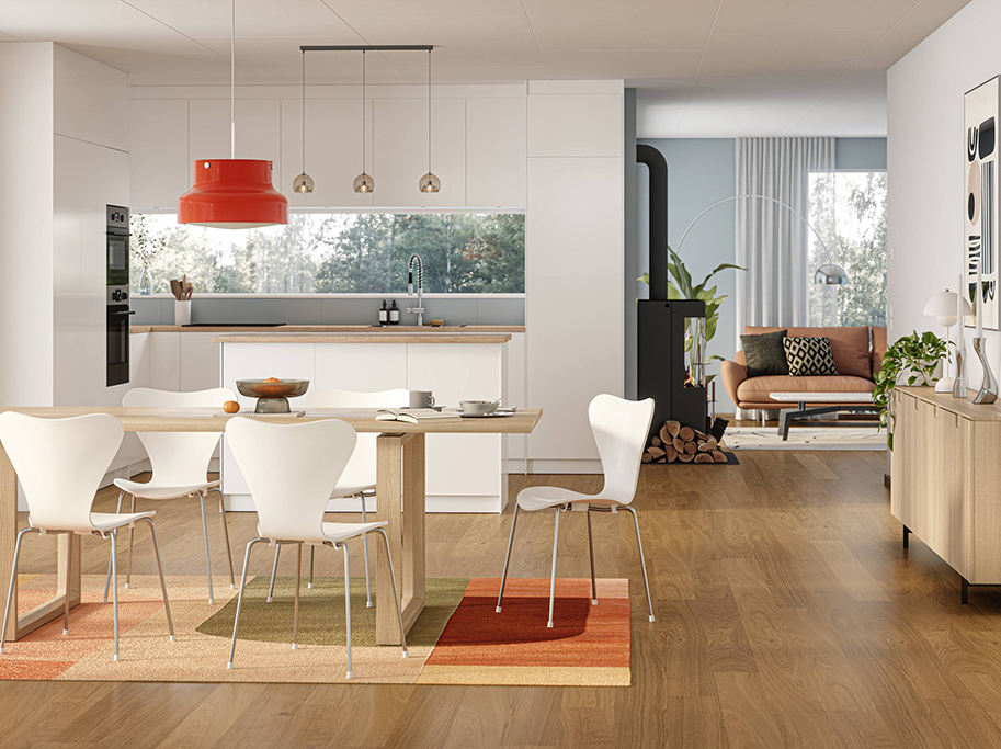 Natural-pigmenteringen fungerer som en alsidig base i indretningen og passer til både moderne og mere klassiske rum.