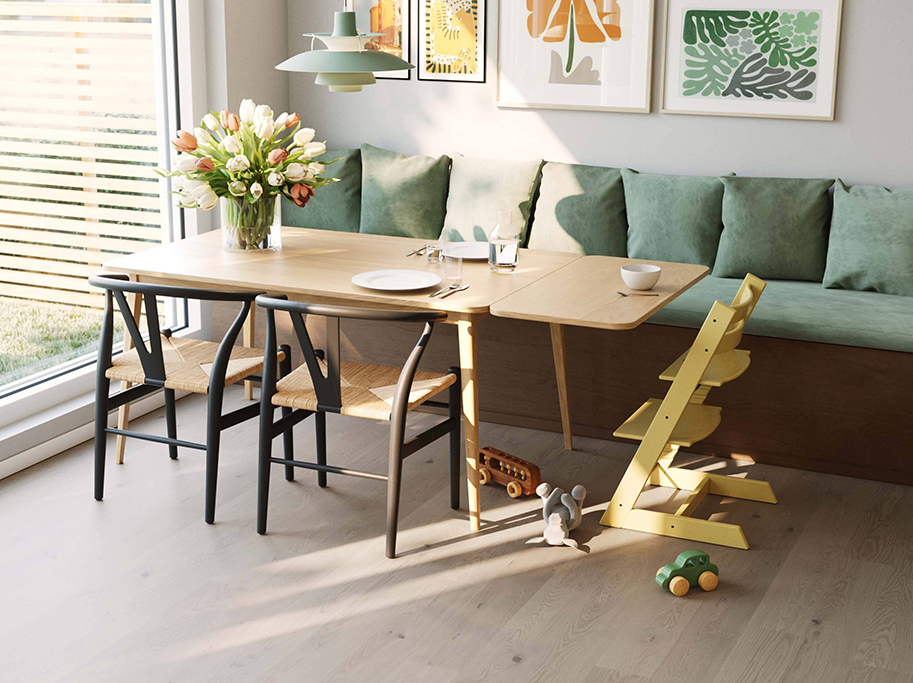 Overfladen er behandlet med slidstærk Pro matlak, som gør gulvet nemt at rengøre og vedligeholde i hverdagen.