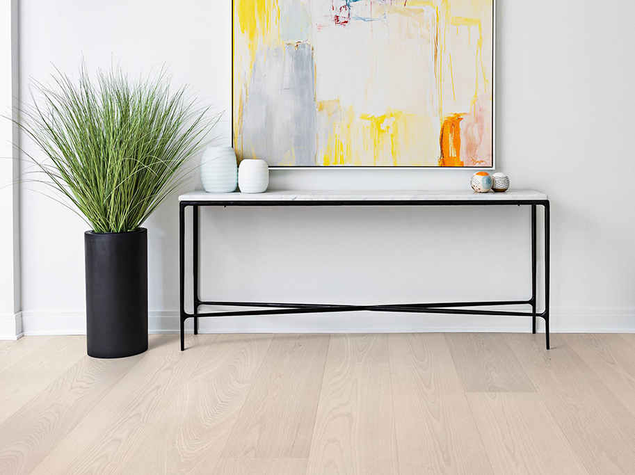 Bjelin Plankegulv Woodura Ask Gullarp 3.0 XXL i Powder White er et lyst plankegulv i ask med et roligt og harmonisk udtryk. Den lyse Powder White pigmentering giver rummet en let og åben fornemmelse og fremhæver træets naturlige åretegninger.