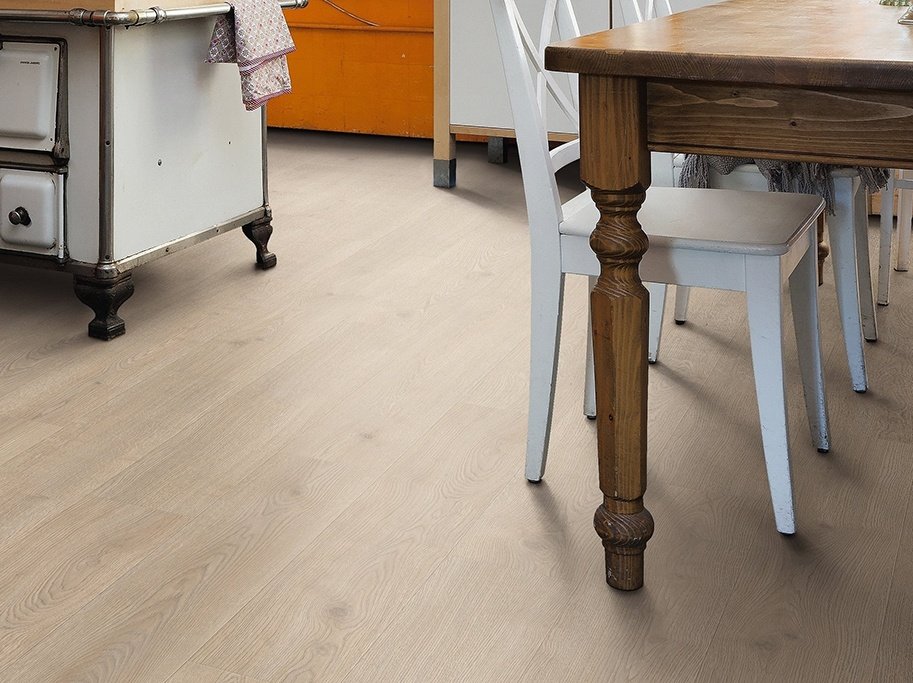 Laminatgulvet Eg Contura Stengrå kræver ingen vedligeholdelse ud over den almindelige rengøring og bliver ikke bleget af solen.