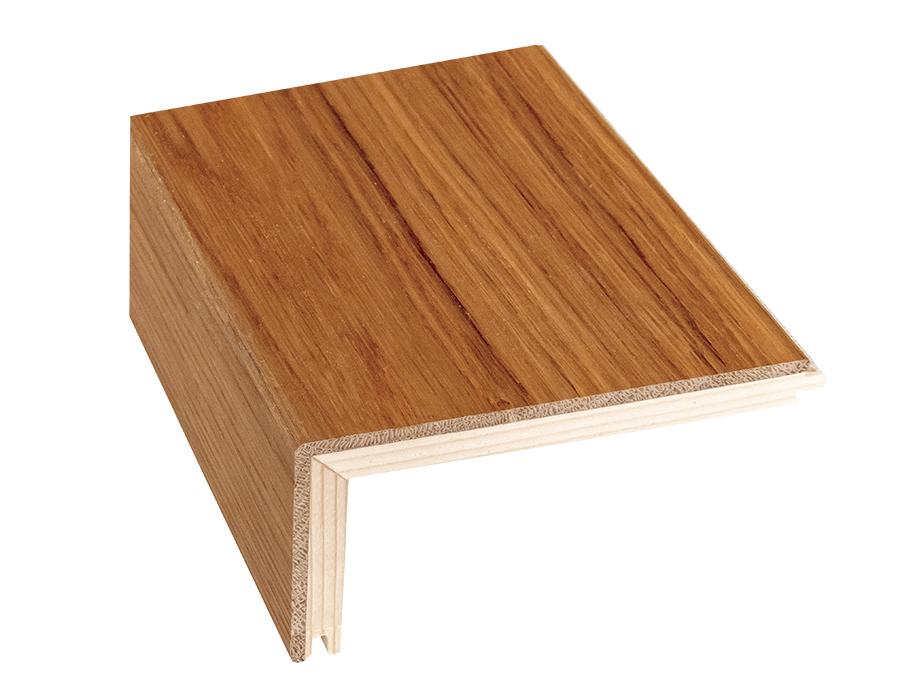 Med trappeafslutningskanter (PG1), der har forbindelse på begge sider, sikres en smuk og glidende overgang mellem trinene. Trappeafslutningskanten har trædetrin på 120 mm og stødtrin på 60 mm. Trappeafslutningskanten skal fuldlimes.
