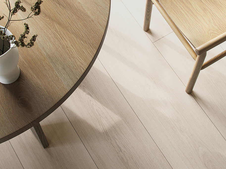 Det arktisk inspirerede egetræsdesign kombinerer kølige nuancer med et naturligt farvespil, som elegant fremhæver træets årer og struktur. Den autentiske overfladebehandling gør, at gulvet både føles og ser ud som ægte egetræ.