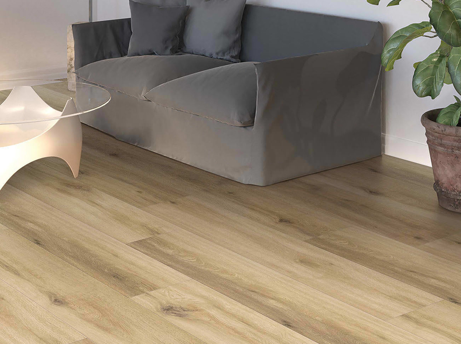 Eg Provence puro fra HARO Disano LifeAqua-serien præsenterer sig med et autentisk trælook og et naturtro farvespil, der emmer af varme og komfort. Det livlige åremønster og de bløde, gyldne nuancer skaber en indbydende atmosfære, som passer perfekt til både moderne og klassiske indretninger.