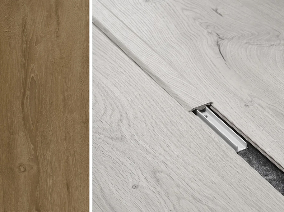 Med sit meget smukke og yderst naturtro trælook skaber den flotte, jævne overgange mellem gulvflader – uanset om der er tale om ægte træ eller laminat med trædesign.