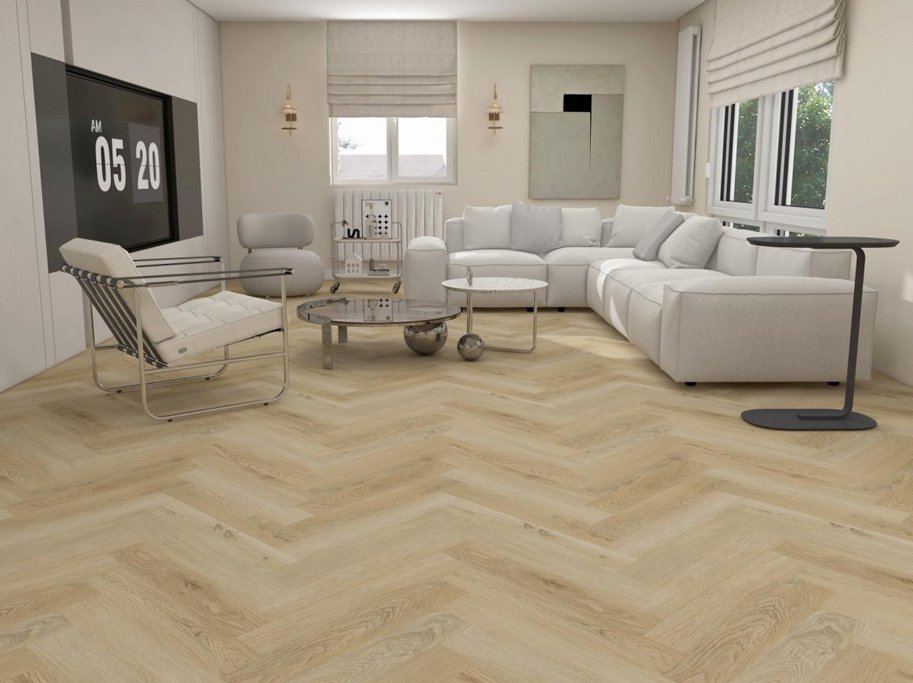 Dette Elite LVT gulv i varianten Lys Eg er designet med et naturtro hvidtonet egetræslook, der skaber en let og luftig atmosfære i boligen.