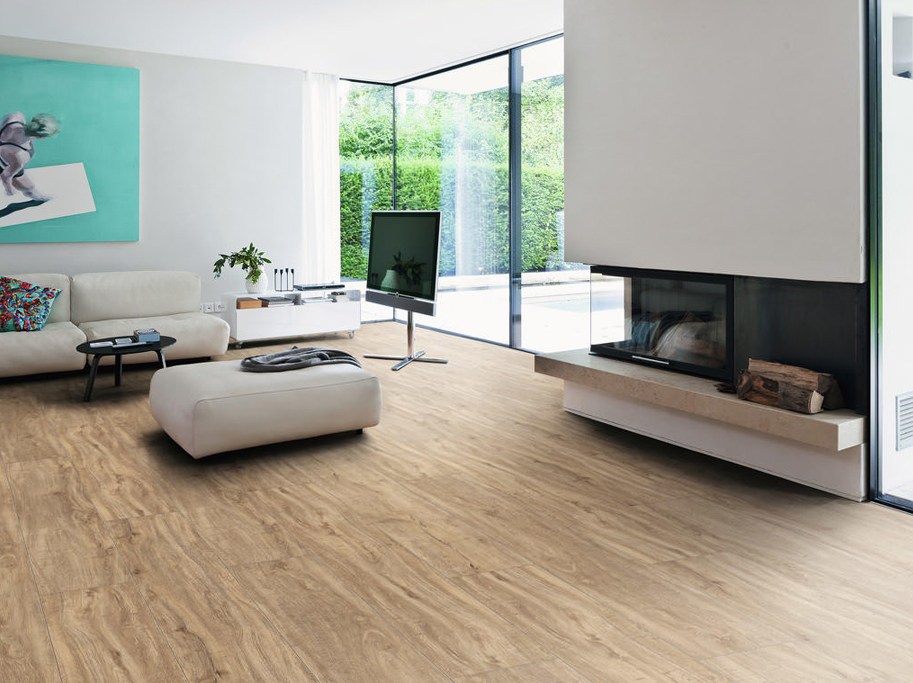 Designgulvet har et moderne 5G kliksystem, der sikrer at gulvet er let at lægge og kan lægges som et svømmende gulv.