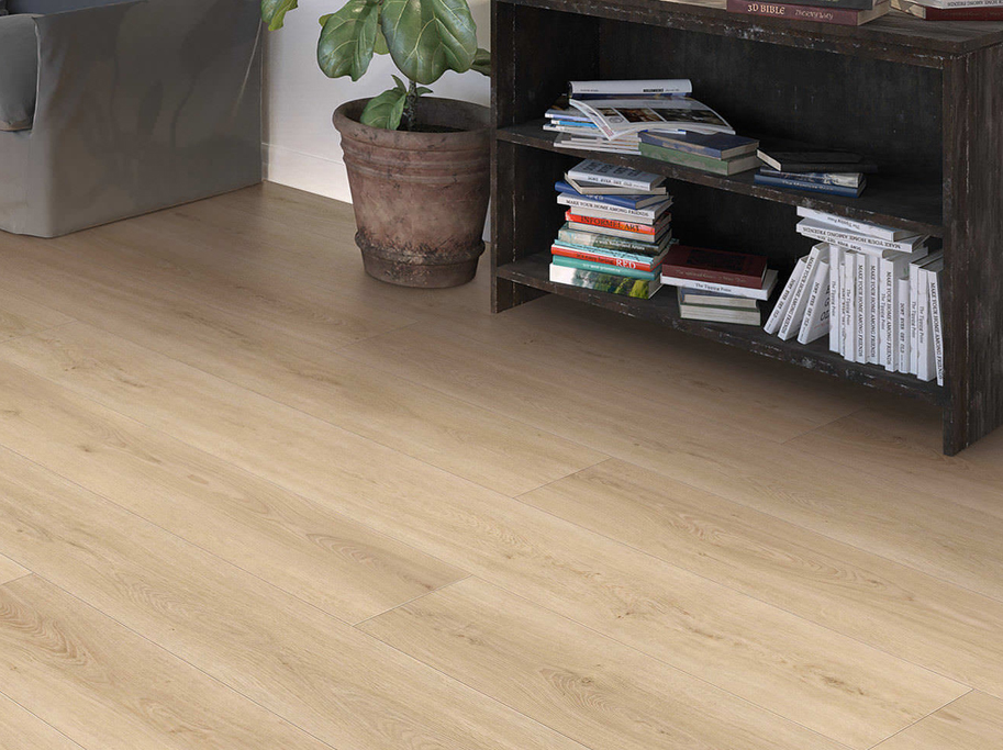 Gulvet har et indbygget korklag som giver gulvet en god gangkomfort og sikrer at gulvet er lyddæmpende. Det praktiske 5G kliksystem gør monteringen enkel og hurtig.