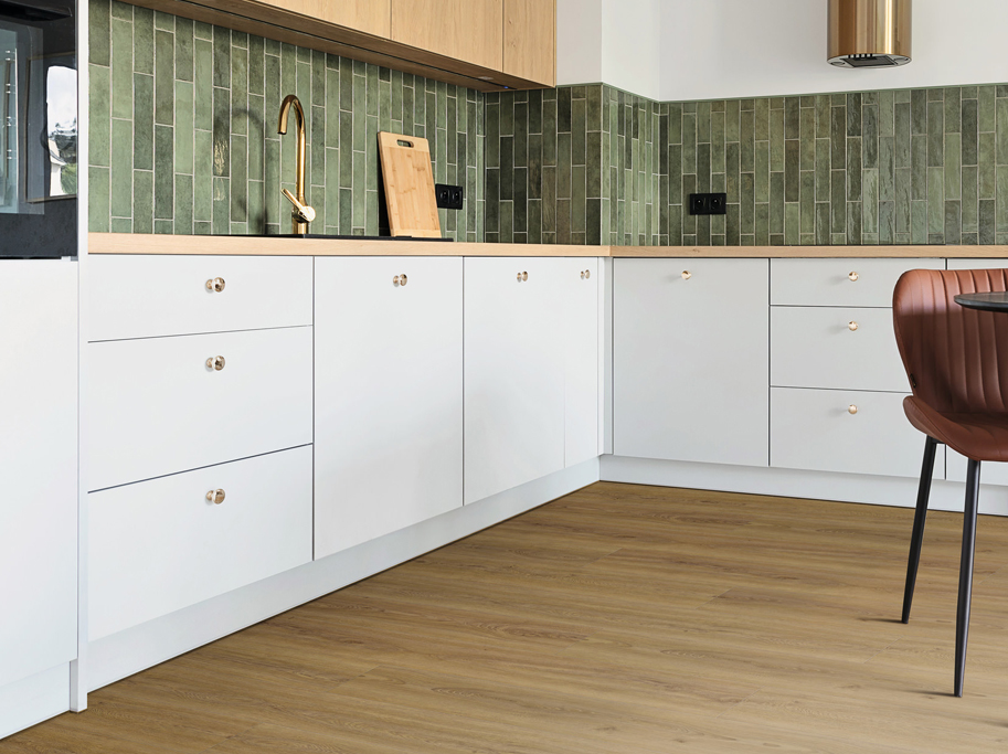 Designgulvet kan lægges i det meste af boligen og er i slidklasse 33, hvilket betyder, at gulvet er egnet til forskellige erhvervsformål.