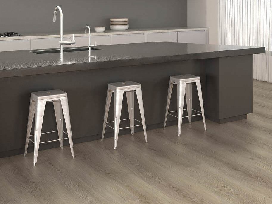 Eg Sheffield gråbrun forener varme og neutrale nuancer i et moderne, gråbrunt egetræsmønster, der tilfører rummet ro og karakter. Den naturtro overflade med autentisk struktur fremhæver trælookets årringe og knaster på elegant vis, og de fire microfasede kanter skaber et klassisk plankeudtryk med visuel dybde.