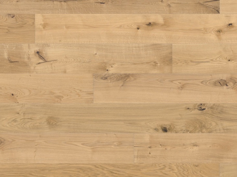 Dette HARO plankegulv er i en Sauvage sortering, hvor både knaster, revner og spartlede områder kan forekomme, hvilket giver gulvet et rustikt udseende, der underbygges af den børstede overflade.