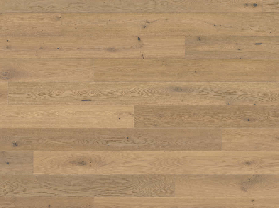 Trægulvets overflade er behandlet med en hvidtonet naturaLin plus olie, der lysner træets udseende og giver gulvet en særlig glød. Top Connect kliksystemet sikrer en nem og stabil montering, selv uden erfaring, mens faser på alle fire sider forstærker det elegante plankeformat.