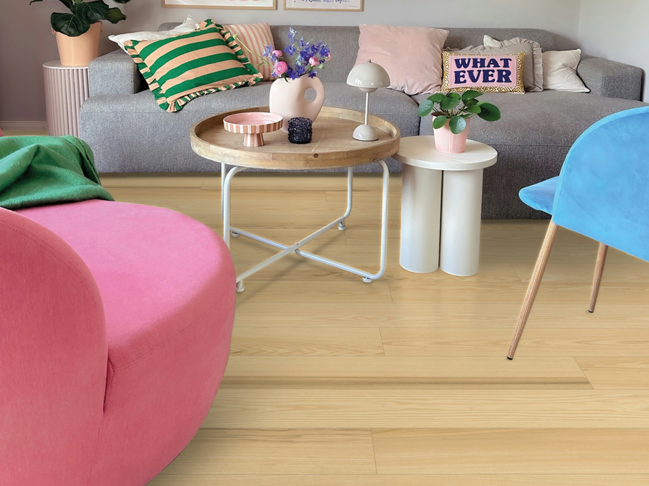 Med naturaDur matlak overfladebehandling får gulvet en slidstærk finish, der bevarer askens lyse, rene karakter.