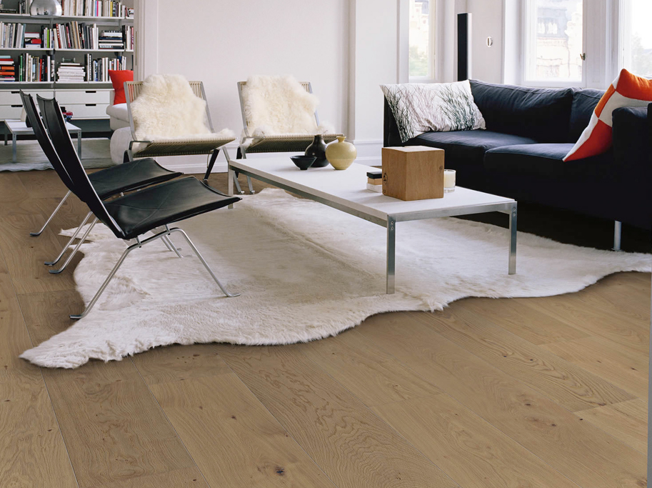 Lyst og indbydende HARO plankegulv i Eg Invisible Markant, der forener nordisk minimalisme med tydelig karakter.