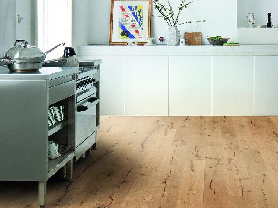 Plankegulvet er udført med en slidstærk naturaLin plus oliebehandling, som beskytter overfladen og understøtter træets smukke glød.