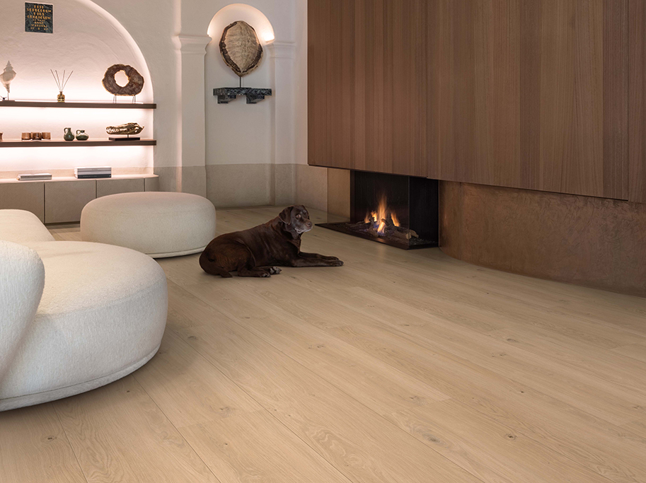 Med sine ekstraordinære planker på 2,10 meter skaber Kylemore en eksklusiv følelse af ubrudte linjer og arkitektonisk ro. Den hvidtonede finish komplementerer den skandinaviske minimalisme perfekt og giver selv mindre rum et løft af lys og luftighed.