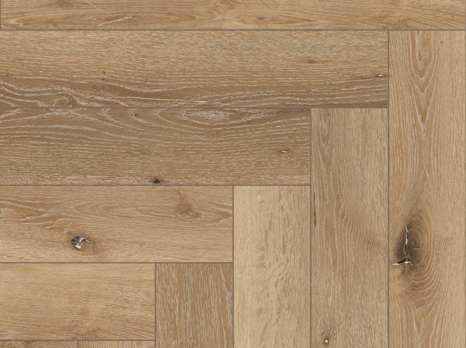 I Coretec Naturals-serien får du gulve, hvor holdbarhed og æstetik går hånd i hånd. Lumber har et varmt, rustikt trælook i et klassisk sildebensmønster, hvor knaster og åretegninger giver masser af karakter.